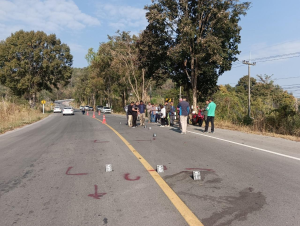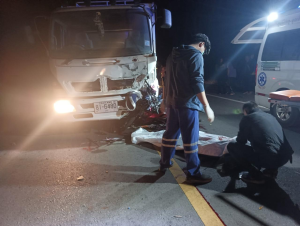 ตรวจสถานที่เกิดเหตุ เหตุรถบรรทุกเชี่ยวชนรถจักยานยนต์และมีผู้เสียชีวิต