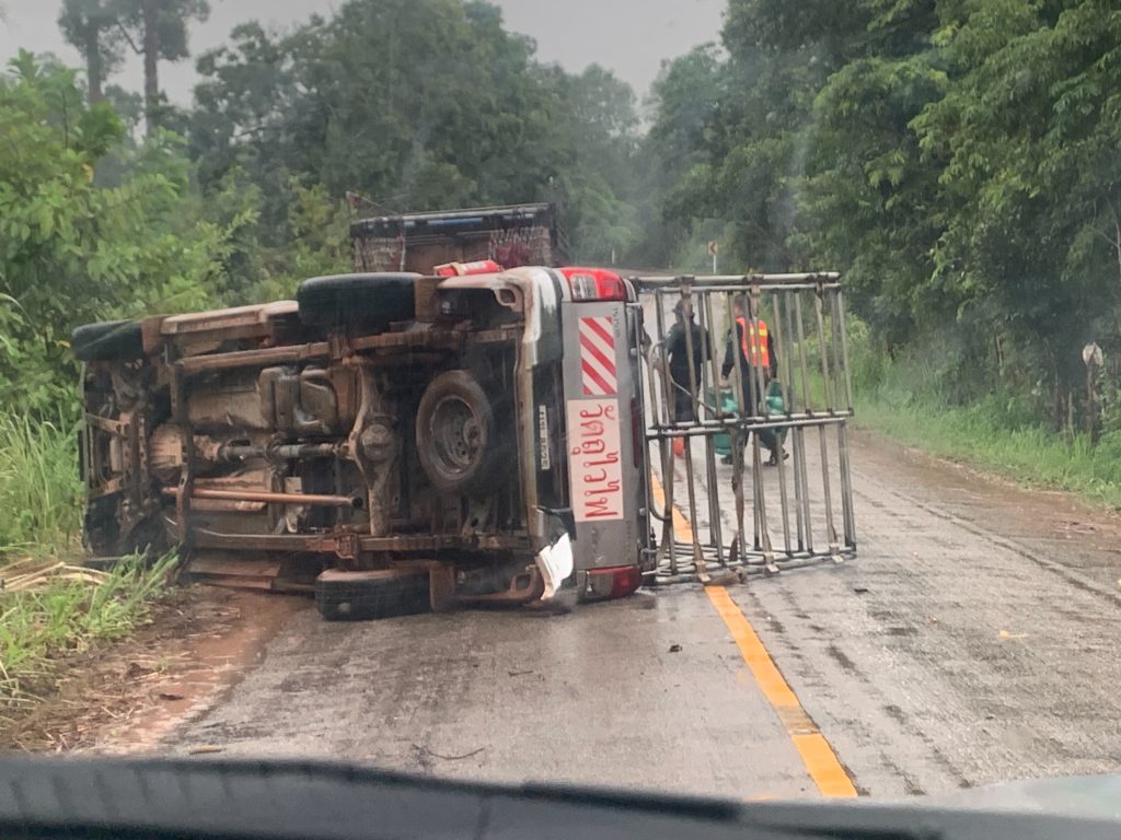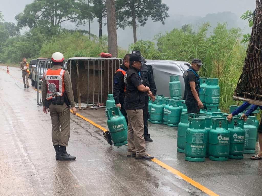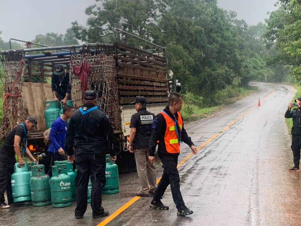 ได้รับแจ้งจากทหารพรานมีรถแก๊ซพลิกคว่ำที่บ้านนาเจริญ