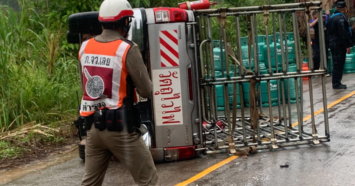 ได้รับแจ้งจากทหารพรานมีรถแก๊ซพลิกคว่ำที่บ้านนาเจริญ