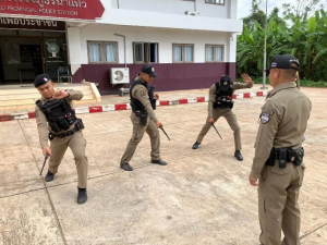 (มีกระสุนไม่ต่ำกว่า 3 แม็กกาซีน 45 นัด) วิทยุสื่อสาร/หูฟัง ไฟฉาย กระบองยืดหด กุญแจมือ/เครื่องพันธนาการ หมวกนิรภัยพร้อมกล้องติดหมวก กล้องบันทึกภาพเคลื่อนไหว(กรณีหมวกนิรภัยไม่มีกล้องบันทึกภาพ) เสื้อเกาะกันกระสุนพร้อมติดแถบสะท้อนแสง สมุดพก โทรศัพท์มือถือพร้อมแบตสำรวจทุกนายพร้อมปฏิบัติ การตรวจอาวุธ และฝึกทบทวนดังนี้ การฝึกท่าตรวจอาวุธ พร้อมทั้ง อบรม/ชี้แจง และเน้นย้ำการปฏิบัติให้เป็นไปตามนโยบายและข้อสั่งการของผู้บังคับบัญชาทุกระดับชั้น