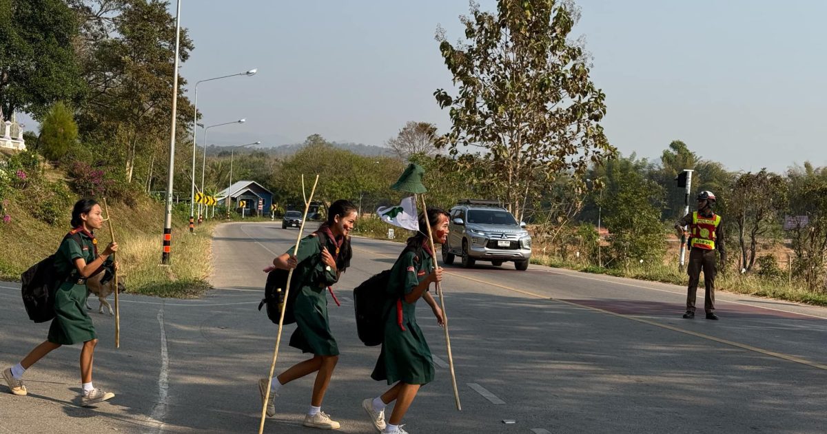เจ้าหน้าที่ตำรวจจราจร สภ.นาแห้ว ได้อำนวยความสะดวกจราจร กิจกรรมเดินทางไกล ลูกเสือ เนตรนารี รร.นาแห้ววิทยา อ.นาแห้ว จ.เลย