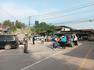เจ้าหน้าที่ตำรวจจราจร สภ.นาแห้ว อำนวยความสะดวกจราจร ขบวนพาเหรด รร.บ้านนาแห้ว จากจุดบริการประชาชน อำเภอนาแห้ว ถึง รร.บ้านนาแห้ว อ.นาแห้ว จ.เลย