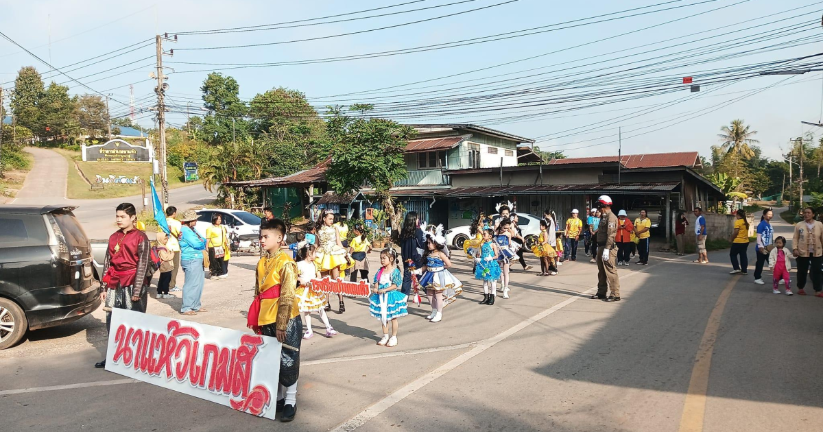 เจ้าหน้าที่ตำรวจจราจร สภ.นาแห้ว อำนวยความสะดวกจราจร ขบวนพาเหรด รร.บ้านนาแห้ว จากจุดบริการประชาชน อำเภอนาแห้ว ถึง รร.บ้านนาแห้ว อ.นาแห้ว จ.เลย