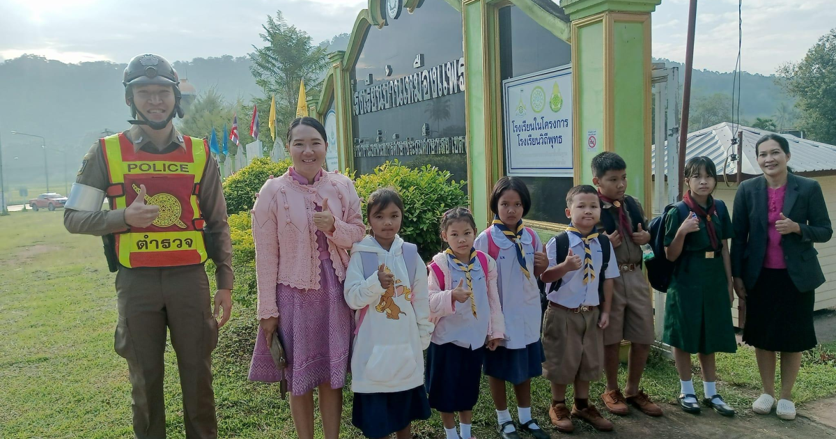 เจ้าหน้าที่ตำรวจจราจร สภ.นาแห้ว ได้อำนวยความสะดวกจราจร หน้าโรงเรียนในเขตพื้นที่รับผิดชอบ อ.นาแห้ว จ.เลย