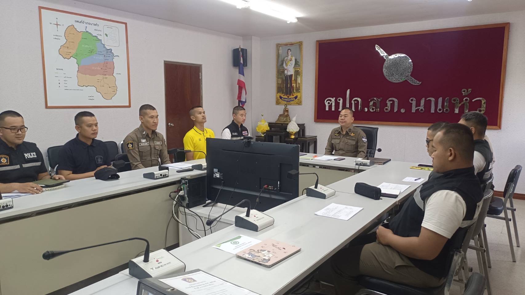 กิจกรรมที่ 6 พ.ต.อ.พิชิต กอปรกิจงาม ผกก.สภ.นาแห้ว ประชุมชี้แจงให้ข้าราชการตำรวจธุรการ ทุกสายงานสรุปผ