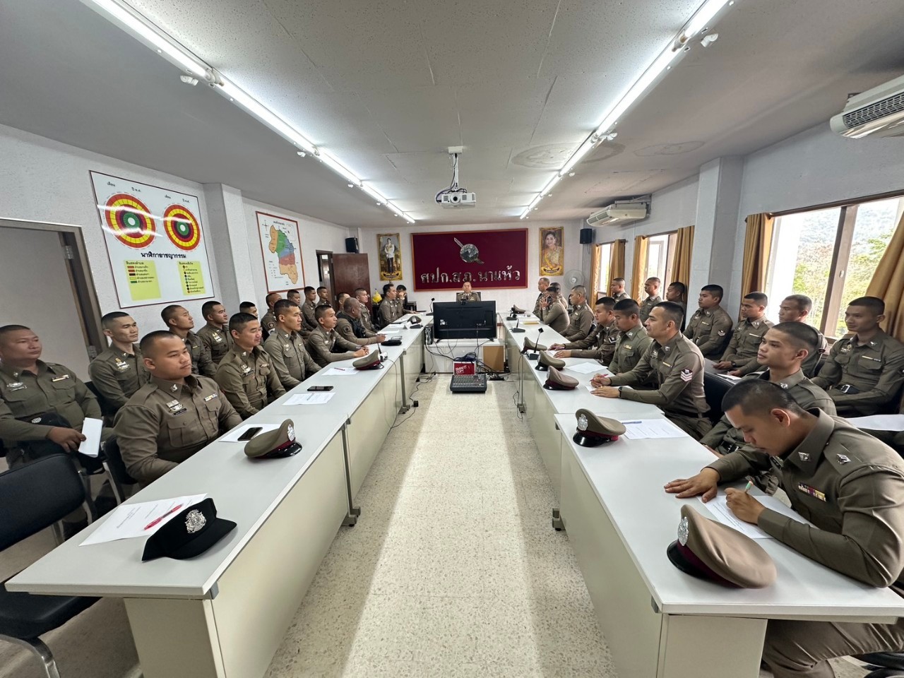 กิจกรรมที่ 6 พ.ต.อ.พิชิต กอปรกิจงาม ผกก.สภ.นาแห้ว ประชุมชี้แจงให้ข้าราชการตำรวจธุรการ ทุกสายงานสรุปผ