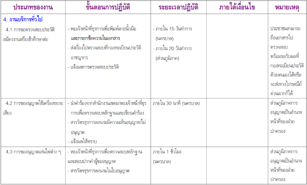 ขั้นตอนการปฏิบัติเพื่อการให้บริการแก่ประชาชน
